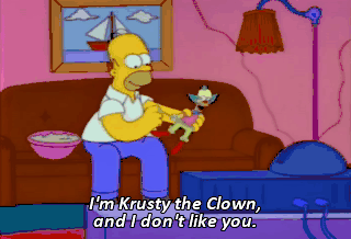 I'm Krusty the Clown, and I don't like you. I'm Krusty the Clown, and I'm going to kill you.