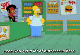 Jeez, you get a lot of nutcases in here. Oh, sir, I've seen things you can't imagine. Hey, hey, hey. I hear you, buddy. Whew. Full moon.