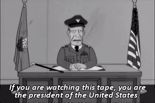 If you are watching this tape, you are the president of the United States. Hello, sir, or ma'am. Hopefully sir. Got that right. Yes!