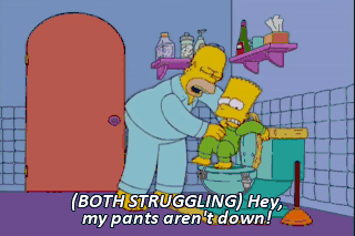 (BOTH STRUGGLING) Hey, my pants aren't down! It doesn't matter! Ee-yow!