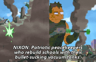 NIXON: Patriotic peacekeepers who rebuild schools with their bullet-sucking vacuum tanks.