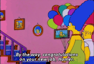 By the way, congratulations on your new job, Homer. New job? Marge is pregnant?