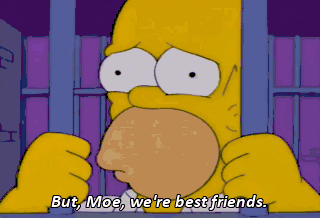 But, Moe, we're best friends. Oh, cripes, the puppy dog look. All right, all right. I'll use the money to bail you out. Hurry, Moe. At 3:00, they're gonna put us in the exercise yard. The exercise yard!