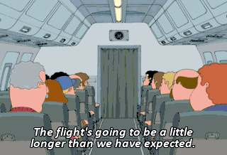 The flight's going to be a little longer than we have expected. Uh, we've got some very strong headwinds. Giggity. Uh, flight attendants, please prepare for take off. (BEEPING) What the hell?