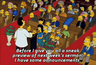 Before I give you all a sneak preview of next week's sermon, I have some announcements. We have some new pamphlets available in our church news rack,
