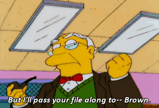But I'll pass your file along to-- Brown. Mmm. Heck of a school. Weren't you at Brown, Otto? Yep. Almost got tenure too. No! Not Brown!