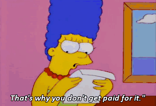 That's why you don't get paid for it." Bart can take my place at the plant. Oh, but he so wanted to see women in the workplace. How about Aunt Patty and Aunt Selma at the D.M.V.? Of course! Of course!