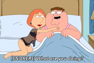 (SNICKERS) What are you doing? I'm fooling around. Come on, sweetie. Let's have some fun.
