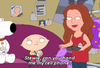 Stewie, can you hand me my cell phone? Oh, sure. (STATIC BUZZING) Thanks. That was weird. Did you hear that when I was giving her the phone? No. It was like interference or something.