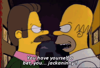 You have yourself a bet, you... jackaninny ! Read that back to me, Marge. "The father of the loser mows the lawn--"