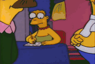 Read that back to me, Marge. "The father of the loser mows the lawn--" Hey, just a minute. "Loser" is such a harsh word. Couldn't we just say "the boy who doesn't win" ? Oh, man. Fine !
