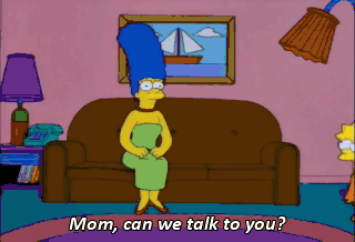Mom, can we talk to you? Can't talk. Keeping myself in a state of catlike readiness. Uh, neat. Anyway, Mom, maybe you should go into therapy.