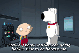 Stewie, I know you've been going back in time to embarrass me.