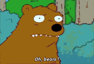 - Oh, bears ! - Mm-hmm. Right, right. Let me show you how many bears there are around here. Uh, hello, bears ! Um, come on. Have a donut. Oh, what the heck, have me ! Come and get it !