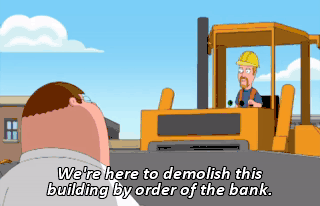 We're here to demolish this building by order of the bank. Like hell you are!