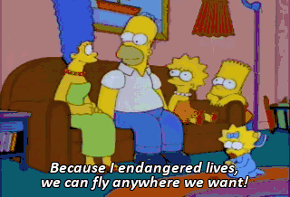 Because I endangered lives, we can fly anywhere we want! Alaska! Hawaii! I don't know, Homer.