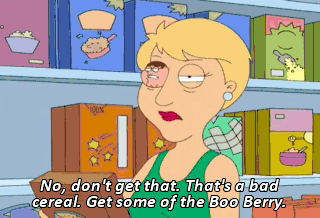 No, don't get that. That's a bad cereal. Get some of the Boo Berry.