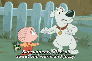 But suddenly, I feel all sweet and warm and fuzzy. It seems we're in a universe where everything is drawn by Disney. Look, there's our house! (LAUGHING) Look how gaily we run!