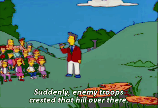 Suddenly, enemy troops crested that hill over there. Fort Springfield, we surrender unconditionally.