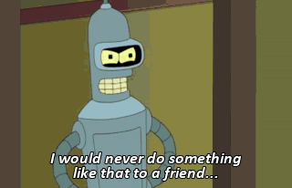 I would never do something like that to a friend... Every single night while he's sleeping. (MECHANICAL WHIRRING) Who sent you? Why are you dressed like Fry? 'Cause I'm Fry.