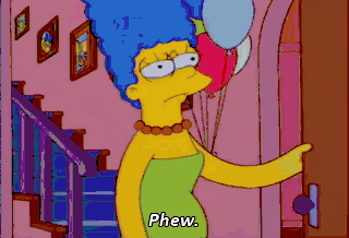 Phew. Man, it's windy as hell out there. Hey, wait a minute. What are all these presents? It looks like you're "showering" Marge with gifts. Hmm, with little tiny baby-sized gifts.