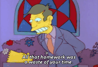 All that homework was a waste of your time. Thanks, Bart. We got the day off from school for this. - Yeah, and I got the day off from work. - Homer !