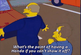 What's the point of having a Honda if you can't show it off? Sir, if you'll just stop yelling at me, I'm sure I can find a replacement.