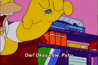 Ow! Okay now. Put-- it-- down. Oh! Okay. That's quite enough. It's not funny anymore. D'oh! D'oh! No, no, no!