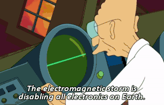 The electromagnetic storm is disabling all electronics on Earth. (POWER DRAINS) Hi, there. Well, it wasn't a bad life. If only I could get back that time I spent watching TRON: Legacy.