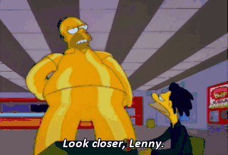 Look closer, Lenny. Oh, you're the biggest man in the world now and you're covered in gold.