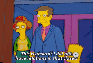 This is absurd! I did not have relations in that closet! And the fact is, I haven't-- Uh-- Yes? Seymour, I think you'd better tell them.