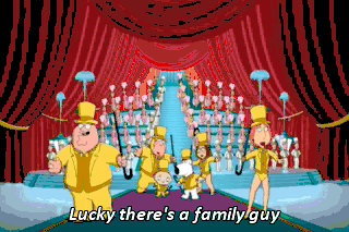 Lucky there's a family guy Lucky there's a man who positively can do All the things that make us Laugh and cry He's a family guy