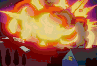 It blew up the bridge! We're doomed! It's times like this I wish I were a religious man. It's all over, people! We don't have a prayer!