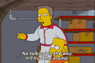 No talking on the way. It'll hurt the drama. - Can I just... - Shh. Drama.