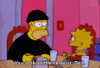 You look a little nervous, Dad. No, you look a little nervous, Lisa. You're up to something aren't you? No! I'm just going out to commit certain deeds. Suckers. Thank you. Welcome, folks. Have fun.