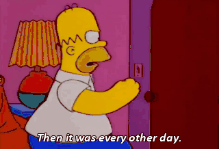 Then it was every other day. Now I'm lucky if I can find half an hour a week in which to get funky. I've gotta get out of this rut and back into the groove! Well, good! Try to include Bart and Lisa.