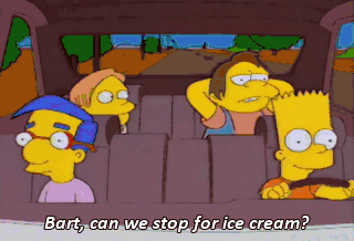 Bart, can we stop for ice cream? Yes. Bart, can we weigh the car at that weigh station? Yeah. Bart, can we pick up that hitchhiker?