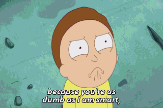 because you're as dumb as I am smart, which is why when I say "shut up," it's really good advice. Great. Nice work, Morty.