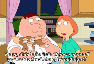 Peter, didn't the little Chinese man tell you not to feed him after midnight? Oh, come on, Lois. He's so cute and he's hungry. What could happen? Hello, I'm Fran Drescher.