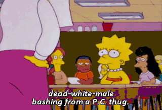 dead-white-male bashing from a P.C. thug. It's women like you who keep the rest of us from landing a husband. Well, nice talking to ya. Lisa? Miss Hoover thought I made the whole thing up.
