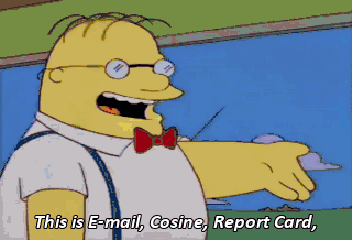 This is E-mail, Cosine, Report Card, Database and Lisa. Your nickname will be Cosmos. Well, I'm done eating. Good-bye.