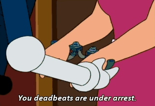 You deadbeats are under arrest. It's a stone-cold shame. He's making a break for it! Get him! No, no, i-i was just picking my nose. He's picking his nose! Get him!
