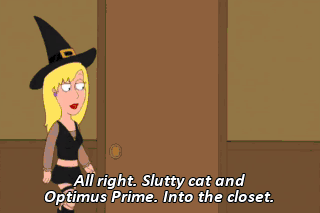 All right. Slutty cat and Optimus Prime. Into the closet.