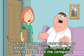 You know, I spent a year alone on a desert island with nothing but a monkey to keep me company.
