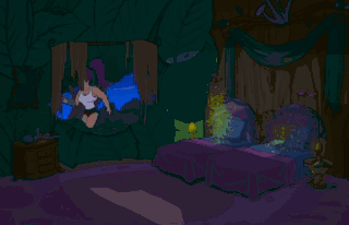 (KNOCKING ON DOOR) Come in. (KISSING SOUNDS) (FRY GIGGLING) Hey, smelly-pants.