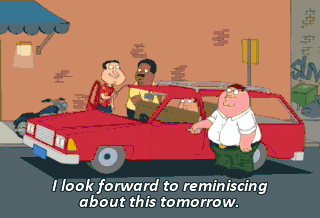 I look forward to reminiscing about this tomorrow. Dad! Wait! You forgot me again! You need a lift? Didn't answer me quick enough. (THUNDER RUMBLING)