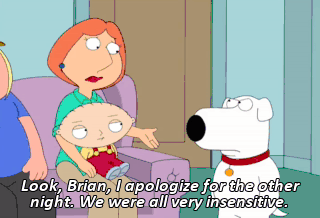 Look, Brian, I apologize for the other night. We were all very insensitive.