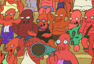 Come on, Fry! Die with dignity! A-ha! Oops. No! I can't stand to look!