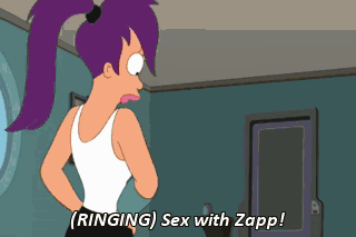 (RINGING) Sex with Zapp! This one is for the E. coli. Ow! - And this one's for the leprechaunorrhea. - Hiddly-dee! I don't care how many diseases Fry has. It was worth it. Right on, brah! I feel free as a bum.