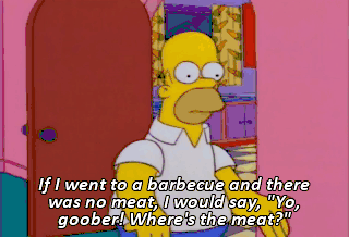 If I went to a barbecue and there was no meat, I would say, "Yo, goober! Where's the meat?" I'm trying to impress people here, Lisa. You don't win friends with salad. You don't win friends with salad